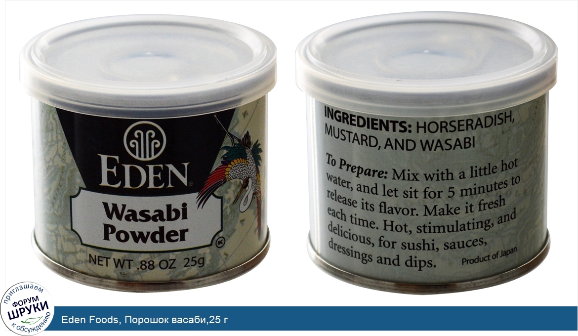 Друзья, если у вас есть отзыв/дополнение/комментарий/вопрос относительно Eden Foods, Порошок васаби,25 г - напишите его ответом в эту тему (это будет полезно всему сообществу в целом и вам в отдельности).