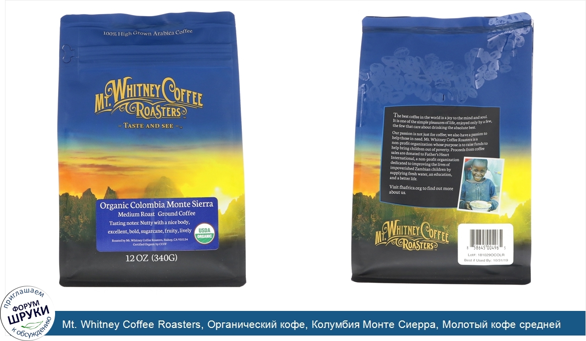 Друзья, если у вас есть отзыв/дополнение/комментарий/вопрос относительно Mt. Whitney Coffee Roasters, Органический кофе, Колумбия Монте Сиерра, Молотый кофе средней степени обжарки, 12 унц. (340 г) - напишите его ответом в эту тему (это будет полезно всему сообществу в целом и вам в отдельности).