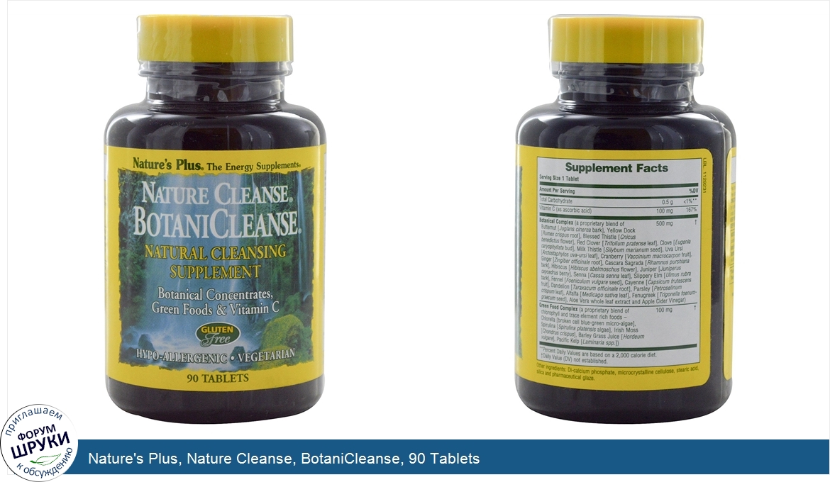 Друзья, если у вас есть отзыв/дополнение/комментарий/вопрос относительно Nature's Plus, Nature Cleanse, BotaniCleanse, 90 Tablets - напишите его ответом в эту тему (это будет полезно всему сообществу в целом и вам в отдельности).