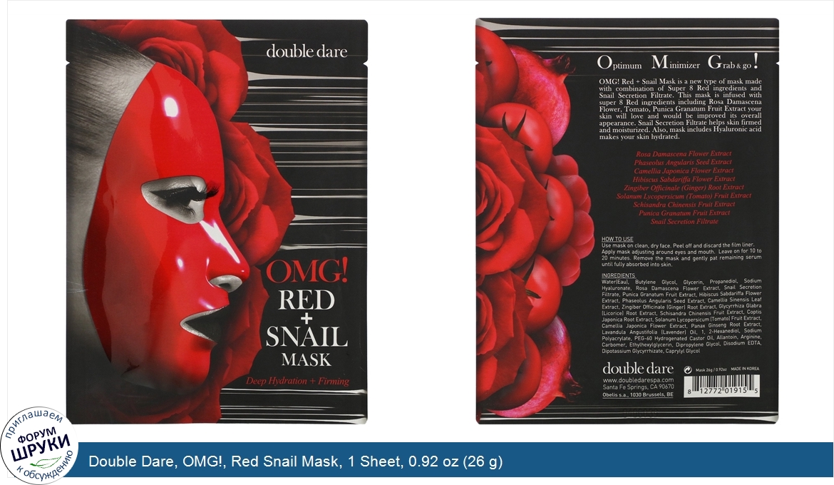 Друзья, если у вас есть отзыв/дополнение/комментарий/вопрос относительно Double Dare, OMG!, Red Snail Mask, 1 Sheet, 0.92 oz (26 g) - напишите его ответом в эту тему (это будет полезно всему сообществу в целом и вам в отдельности).