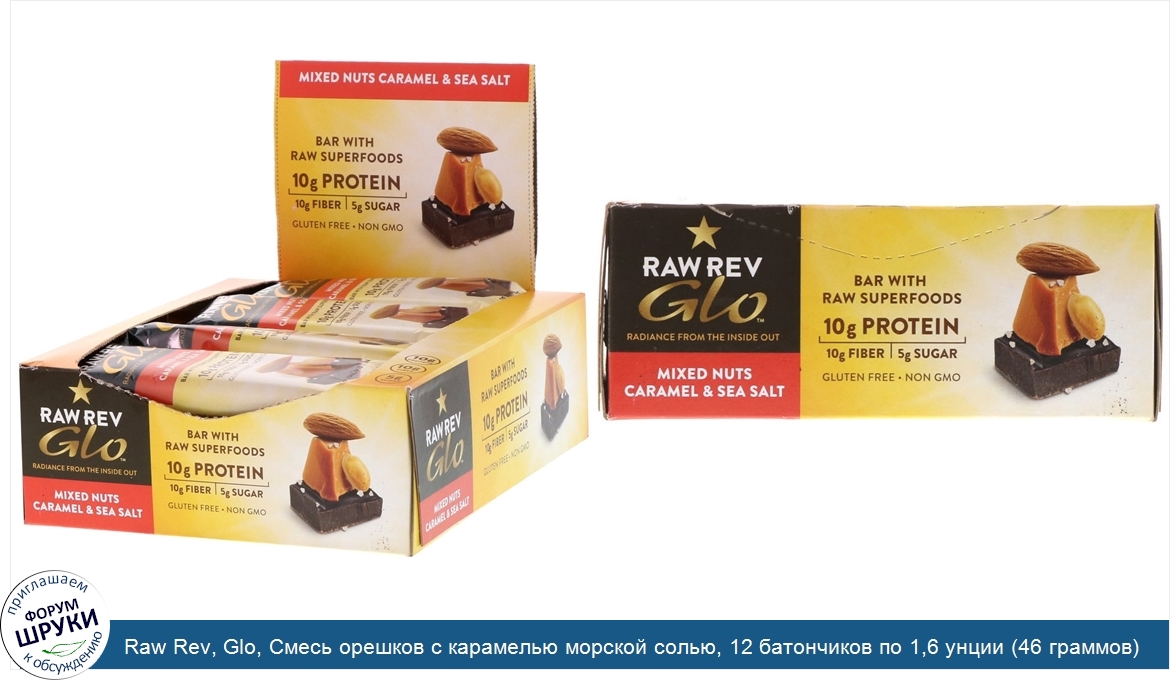 Raw Rev, Glo, Смесь орешков с карамелью морской солью, 12 батончиков по 1,6 унции (46 граммов)