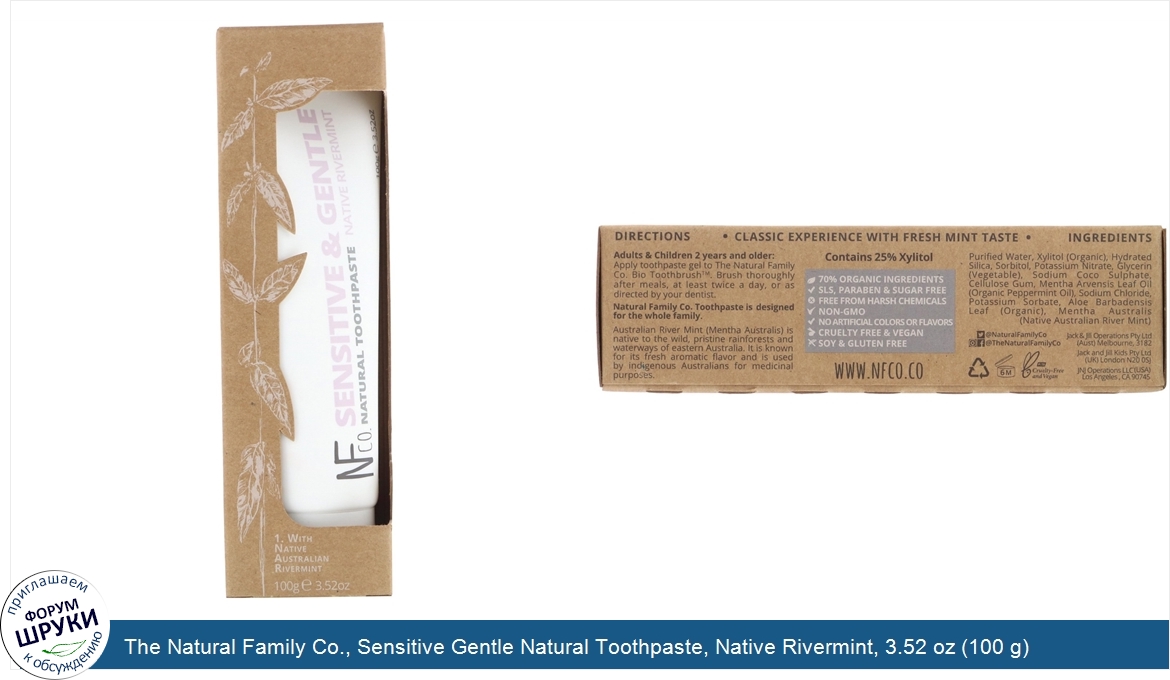 ru The Natural Family Co., Sensitive Gentle Natural Toothpaste, Native Rivermint, 3.52 oz (100 g)