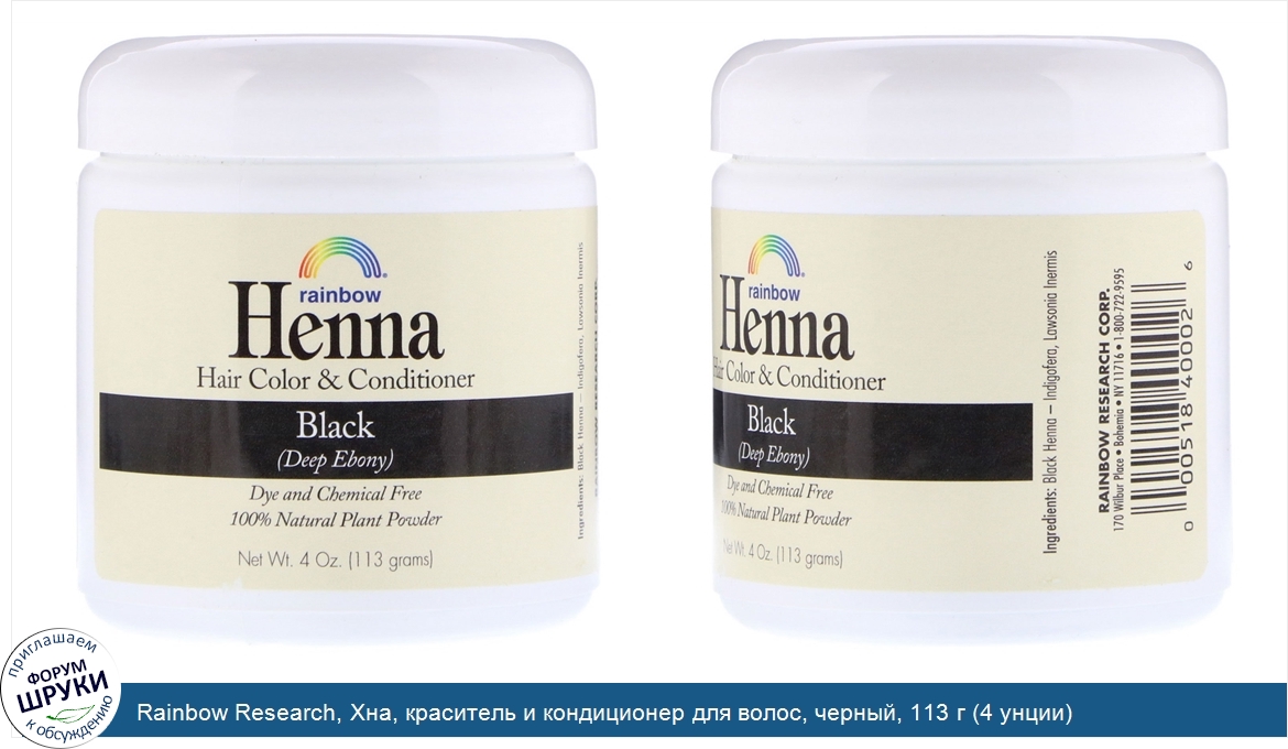 Друзья, если у вас есть отзыв/дополнение/комментарий/вопрос относительно Rainbow Research, Хна, краситель и кондиционер для волос, черный, 113 г (4 унции) - напишите его ответом в эту тему (это будет полезно всему сообществу в целом и вам в отдельности).