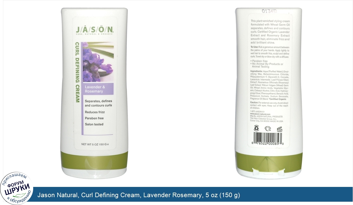 Друзья, если у вас есть отзыв/дополнение/комментарий/вопрос относительно Jason Natural, Curl Defining Cream, Lavender Rosemary, 5 oz (150 g) - напишите его ответом в эту тему (это будет полезно всему сообществу в целом и вам в отдельности).