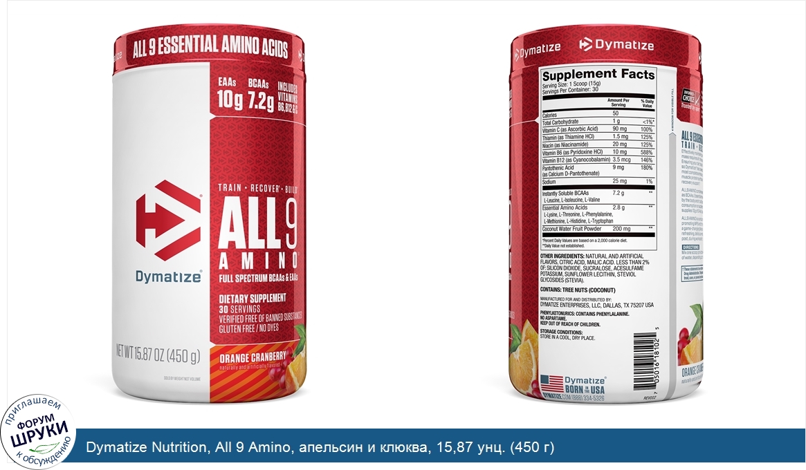 Друзья, если у вас есть отзыв/дополнение/комментарий/вопрос относительно Dymatize Nutrition, All 9 Amino, апельсин и клюква, 15,87 унц. (450 г) - напишите его ответом в эту тему (это будет полезно всему сообществу в целом и вам в отдельности).
