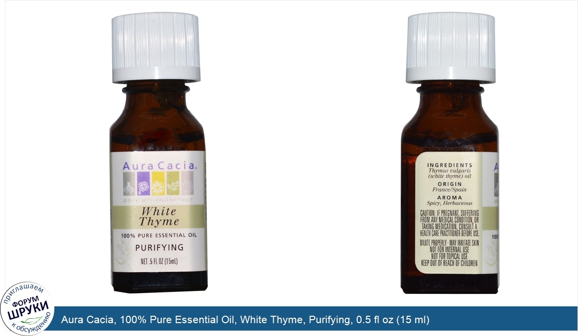 ru Aura Cacia, 100% Pure Essential Oil, White Thyme, Purifying, 0.5 fl oz (15 ml)