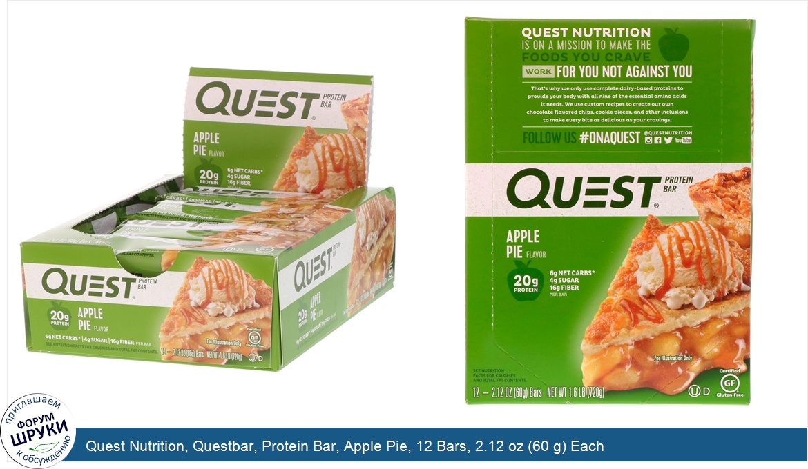 Друзья, если у вас есть отзыв/дополнение/комментарий/вопрос относительно Quest Nutrition, Questbar, Protein Bar, Apple Pie, 12 Bars, 2.12 oz (60 g) Each - напишите его ответом в эту тему (это будет полезно всему сообществу в целом и вам в отдельности).