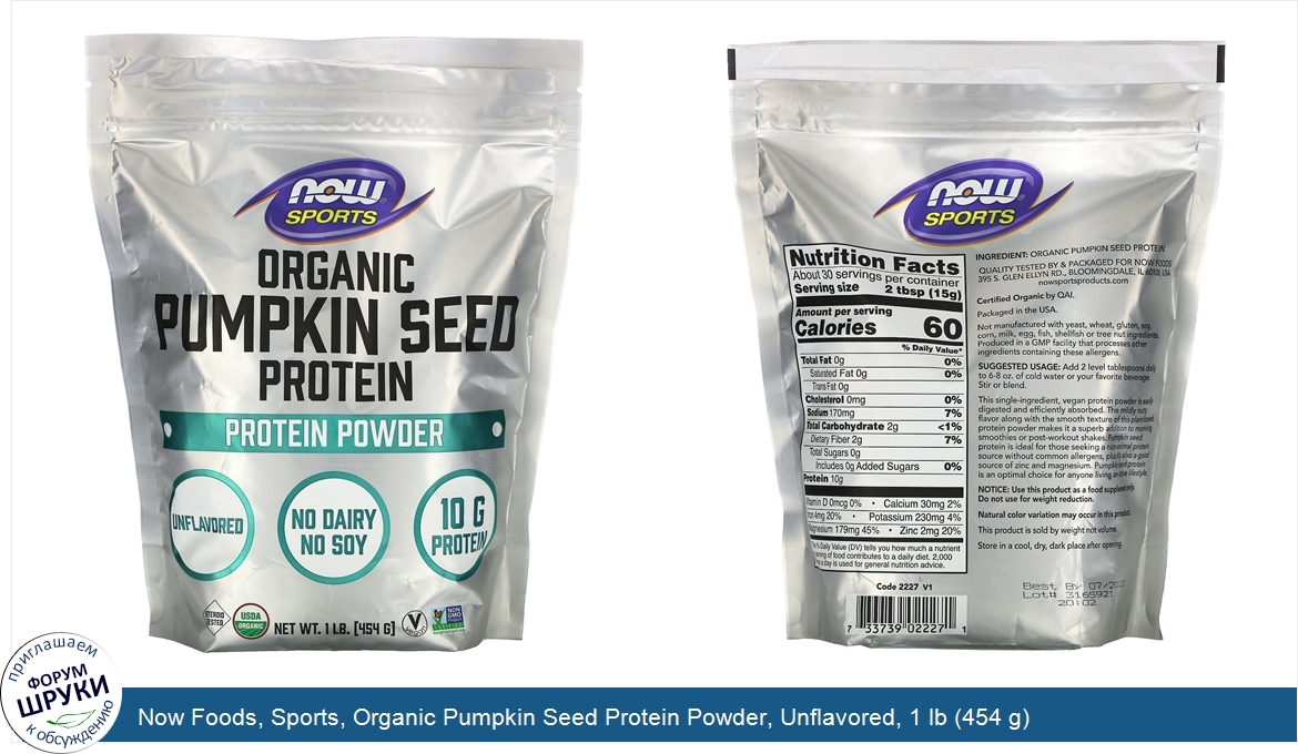 Друзья, если у вас есть отзыв/дополнение/комментарий/вопрос относительно Now Foods, Sports, Organic Pumpkin Seed Protein Powder, Unflavored, 1 lb (454 g) - напишите его ответом в эту тему (это будет полезно всему сообществу в целом и вам в отдельности).