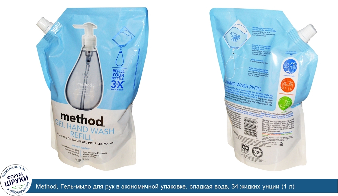 Друзья, если у вас есть отзыв/дополнение/комментарий/вопрос относительно Method, Гель-мыло для рук в экономичной упаковке, сладкая водв, 34 жидких унции (1 л) - напишите его ответом в эту тему (это будет полезно всему сообществу в целом и вам в отдельности).