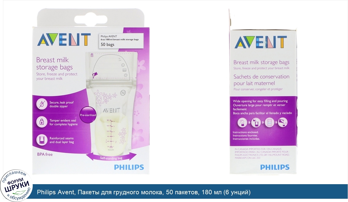 Philips Avent, Пакеты для грудного молока, 50 пакетов, 180 мл (6 унций)