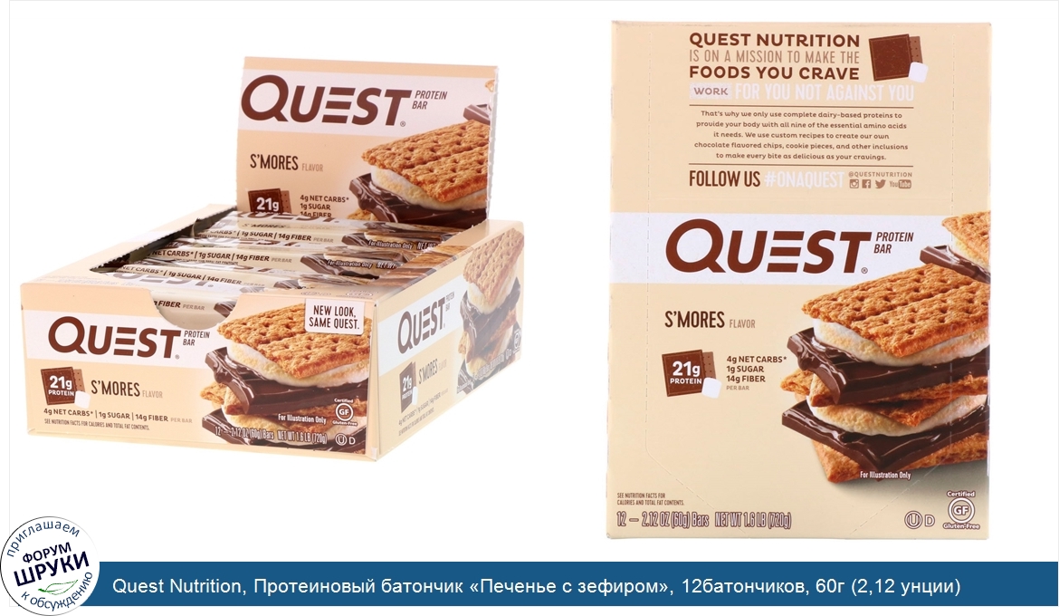 Друзья, если у вас есть отзыв/дополнение/комментарий/вопрос относительно Quest Nutrition, Протеиновый батончик «Печенье с зефиром», 12батончиков, 60г (2,12 унции) каждый - напишите его ответом в эту тему (это будет полезно всему сообществу в целом и вам в отдельности).