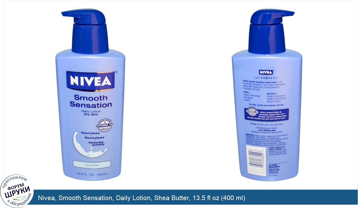 Друзья, если у вас есть отзыв/дополнение/комментарий/вопрос относительно Nivea, Smooth Sensation, Daily Lotion, Shea Butter, 13.5 fl oz (400 ml) - напишите его ответом в эту тему (это будет полезно всему сообществу в целом и вам в отдельности).