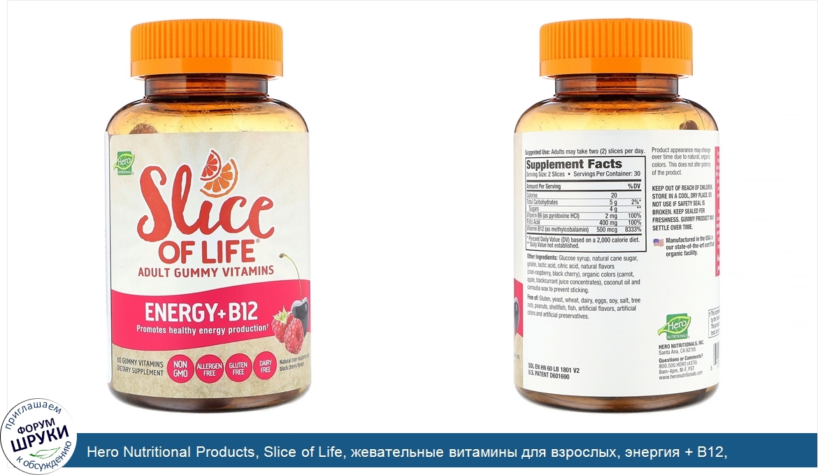 Друзья, если у вас есть отзыв/дополнение/комментарий/вопрос относительно Hero Nutritional Products, Slice of Life, жевательные витамины для взрослых, энергия + B12, вкус натуральных фруктов, 60 жевательных таблеток - напишите его ответом в эту тему (это будет полезно всему сообществу в целом и вам в отдельности).