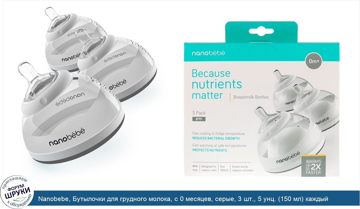 Друзья, если у вас есть отзыв/дополнение/комментарий/вопрос относительно Nanobebe, Бутылочки для грудного молока, с 0 месяцев, серые, 3 шт., 5 унц. (150 мл) каждый - напишите его ответом в эту тему (это будет полезно всему сообществу в целом и вам в отдельности).