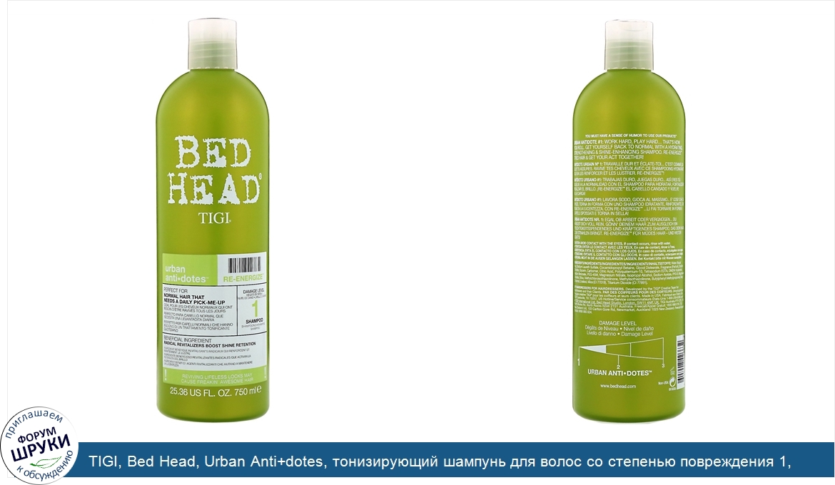 Друзья, если у вас есть отзыв/дополнение/комментарий/вопрос относительно TIGI, Bed Head, Urban Anti+dotes, тонизирующий шампунь для волос со степенью повреждения 1, 750мл (25,36жидк.унций) - напишите его ответом в эту тему (это будет полезно всему сообществу в целом и вам в отдельности).
