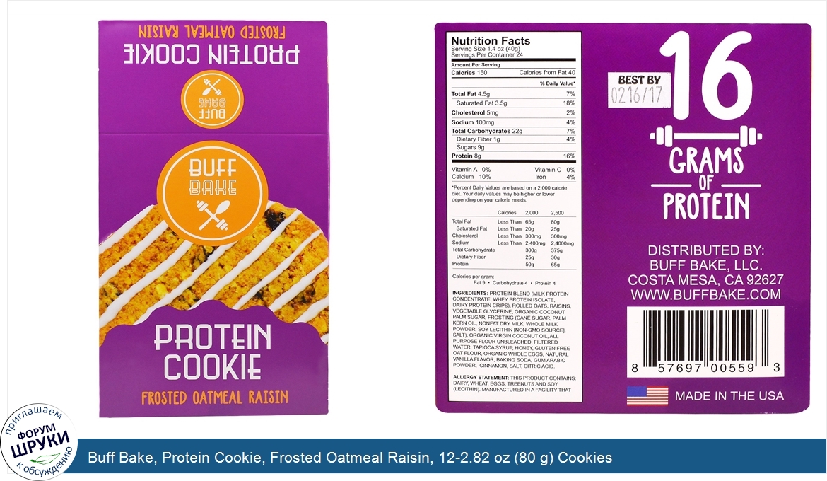 Друзья, если у вас есть отзыв/дополнение/комментарий/вопрос относительно Buff Bake, Protein Cookie, Frosted Oatmeal Raisin, 12-2.82 oz (80 g) Cookies - напишите его ответом в эту тему (это будет полезно всему сообществу в целом и вам в отдельности).