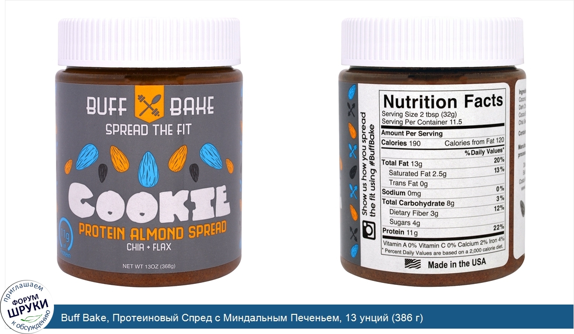 Друзья, если у вас есть отзыв/дополнение/комментарий/вопрос относительно Buff Bake, Протеиновый Спред с Миндальным Печеньем, 13 унций (386 г) - напишите его ответом в эту тему (это будет полезно всему сообществу в целом и вам в отдельности).