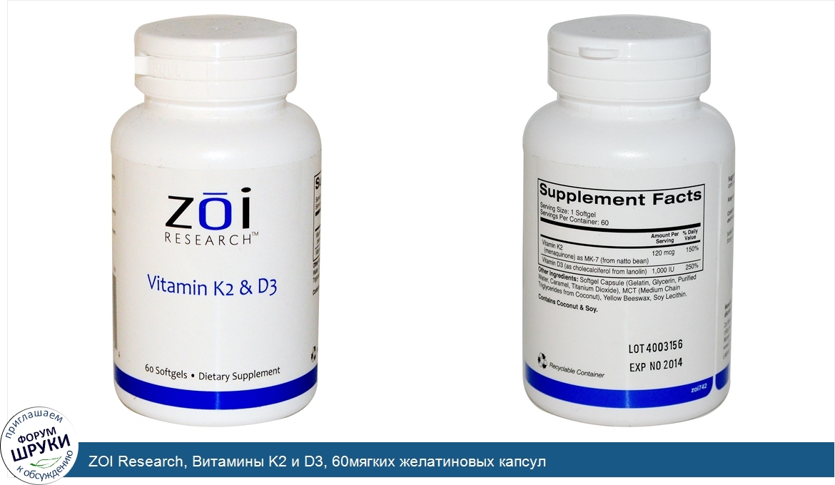 Друзья, если у вас есть отзыв/дополнение/комментарий/вопрос относительно ZOI Research, Витамины K2 и D3, 60мягких желатиновых капсул - напишите его ответом в эту тему (это будет полезно всему сообществу в целом и вам в отдельности).