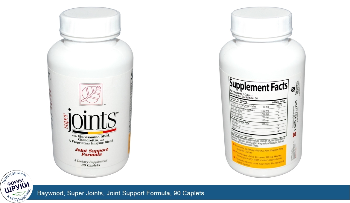 Друзья, если у вас есть отзыв/дополнение/комментарий/вопрос относительно Baywood, Super Joints, Joint Support Formula, 90 Caplets - напишите его ответом в эту тему (это будет полезно всему сообществу в целом и вам в отдельности).