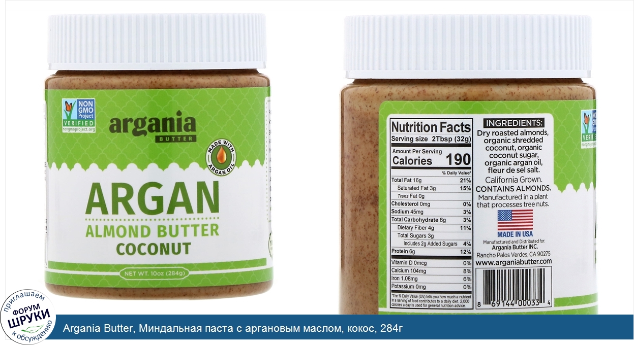 [DESCRIPT]Non GMO Project Verified. Made with Argan Oil. 100% Vegan. No Palm Oil. 6 g Protein. Gluten Free. California Grown. Argan oil, also known as "liquid gold", is native to the southwestern region of Morocco at the foothills of the Atlas Mountains. For more than 3,500 years, the people of North Africa have savored its rich nutty flavor and abundant nutritional properties, including antioxidants, vitamin A E, and omegas 3 9.[/DESCRIPT]... (описание дополняется)