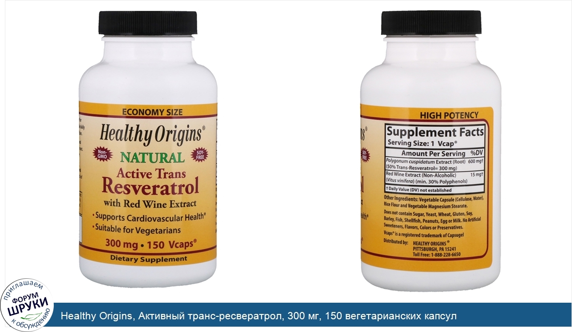 ru Healthy Origins, Активный транс-ресвератрол, 300 мг, 150 вегетарианских капсул