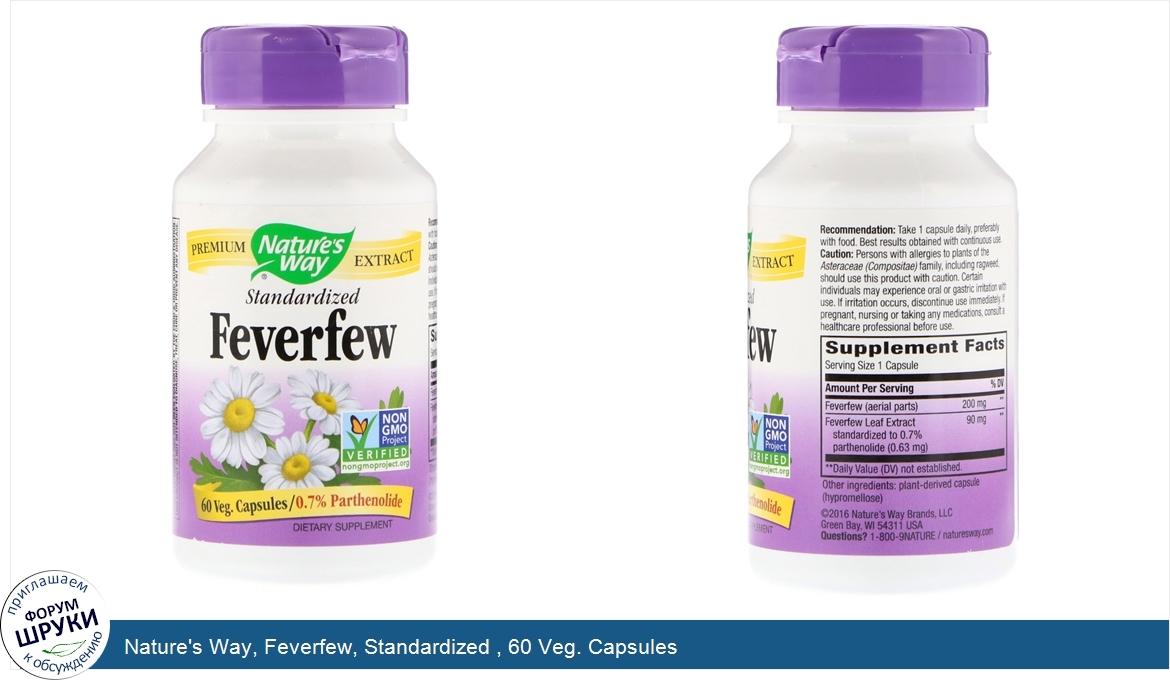 Nature's Way, Feverfew, Standardized , 60 Veg. Capsules