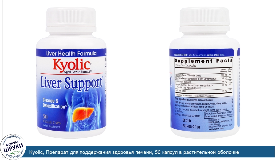 [DESCRIPT]Liver Health Formula. Aged Garlic Extract. Cleanse Detoxification. Dietary Supplement. Suitable for Vegetarians. GMP Certified. Kyolic Liver Support is an advanced liver formula containing a combination of Aged Garlic Extract, Milk Thistle, Glutathione, Picroliv Picrorhiza Kurroa Extract and Amla Fruit Extract to help cleanse the liver and detoxify the body of harmful chemicals. This formula helps protect liver cells and supports normal liver function.[/DESCRIPT]... (описание дополняется)