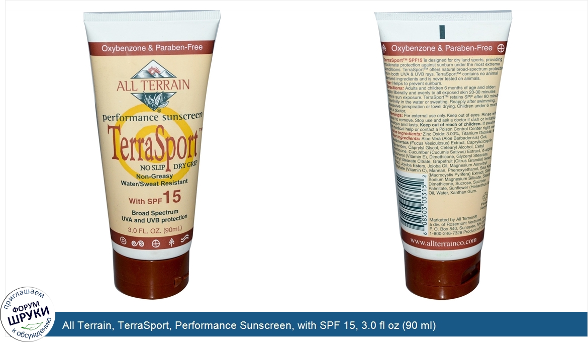 All Terrain, TerraSport, Performance Sunscreen, with SPF 15, 3.0 fl oz (90 ml)