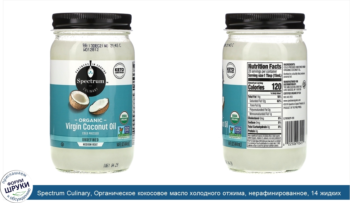 Друзья, если у вас есть отзыв/дополнение/комментарий/вопрос относительно Spectrum Culinary, Органическое кокосовое масло холодного отжима, нерафинированное, 14 жидких унций (414 мл) - напишите его ответом в эту тему (это будет полезно всему сообществу в целом и вам в отдельности).