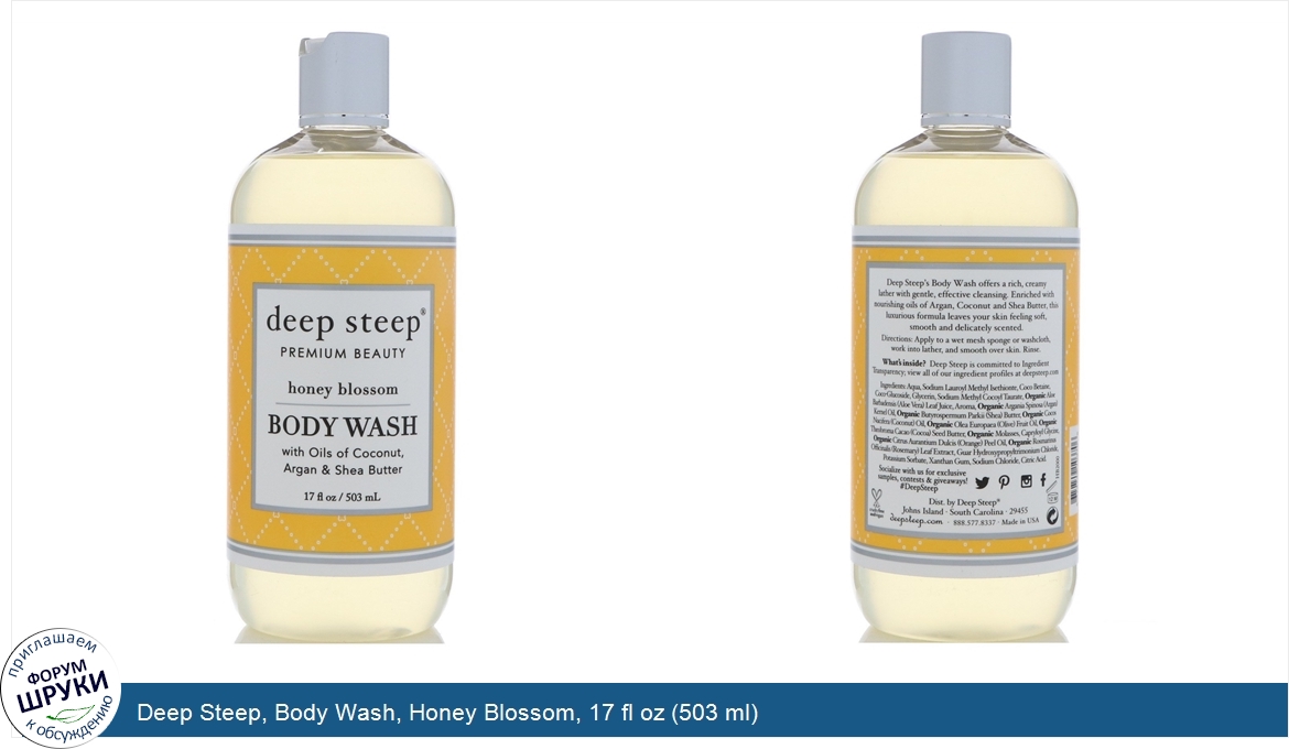 Друзья, если у вас есть отзыв/дополнение/комментарий/вопрос относительно Deep Steep, Body Wash, Honey Blossom, 17 fl oz (503 ml) - напишите его ответом в эту тему (это будет полезно всему сообществу в целом и вам в отдельности).