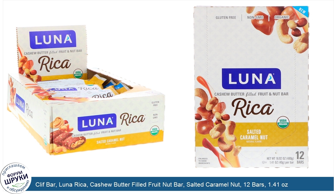 Clif Bar, Luna Rica, Cashew Butter Filled Fruit Nut Bar, Salted Caramel Nut, 12 Bars, 1.41 oz (40 g) Each