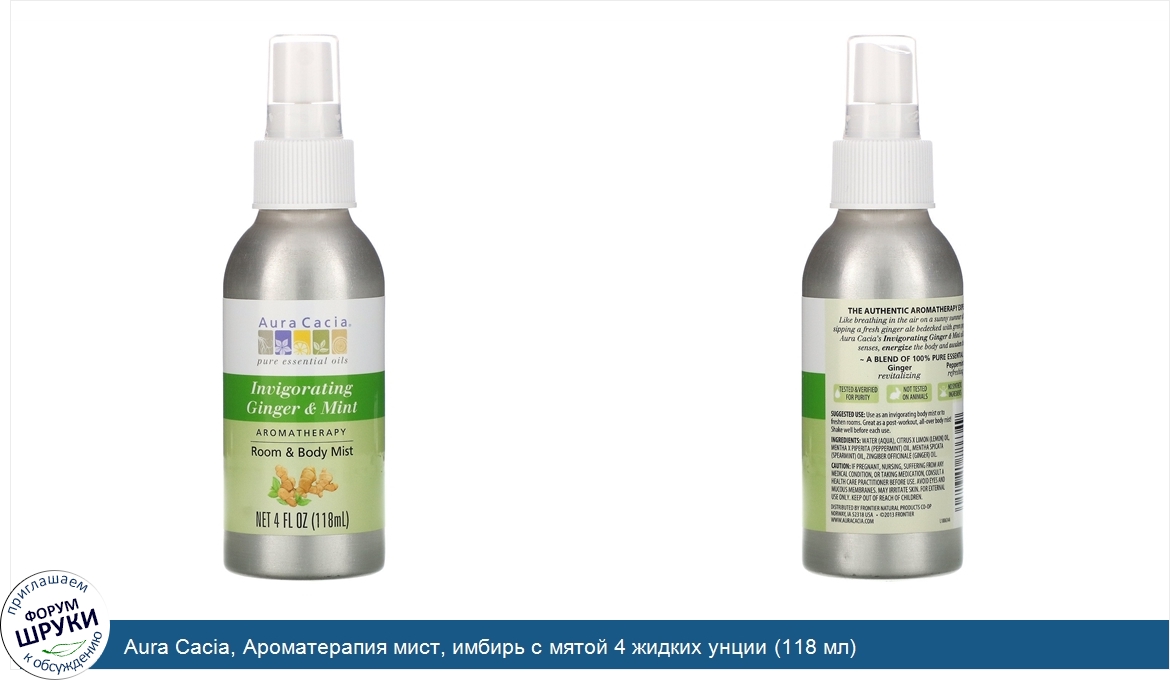 Aura Cacia, Ароматерапия мист, имбирь с мятой 4 жидких унции (118 мл)