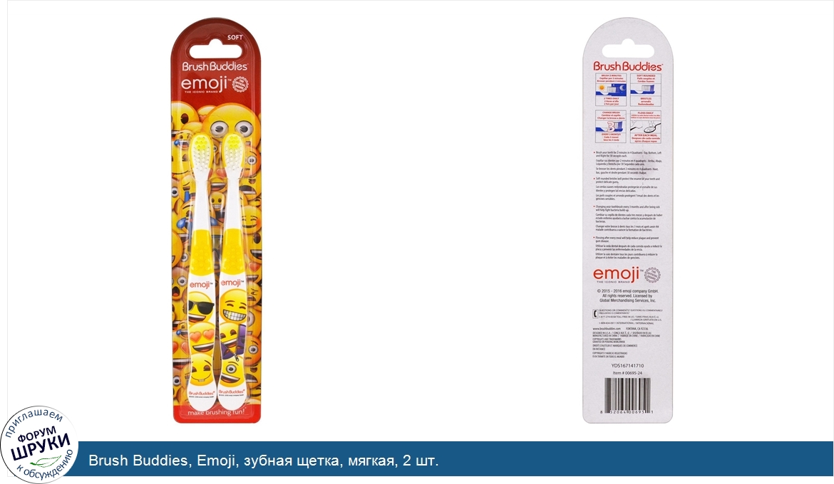 Друзья, если у вас есть отзыв/дополнение/комментарий/вопрос относительно Brush Buddies, Emoji, зубная щетка, мягкая, 2 шт. - напишите его ответом в эту тему (это будет полезно всему сообществу в целом и вам в отдельности).