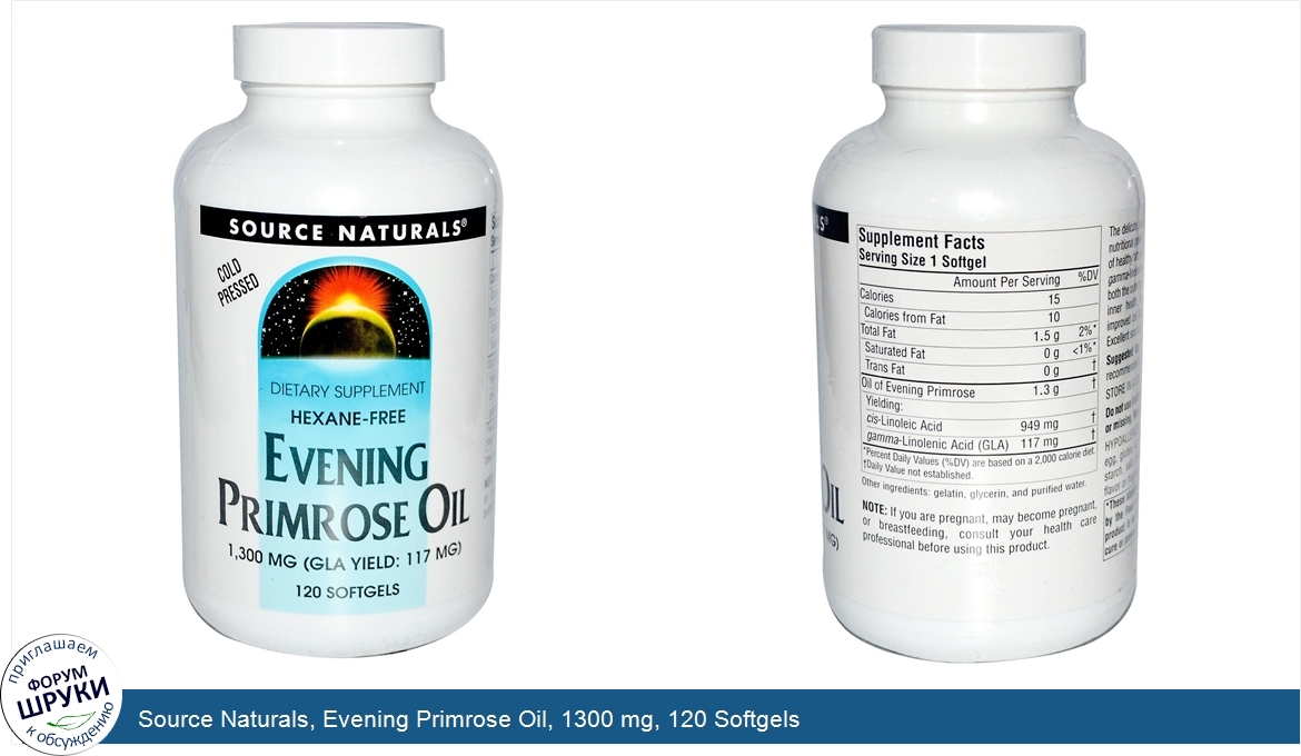 Друзья, если у вас есть отзыв/дополнение/комментарий/вопрос относительно Source Naturals, Evening Primrose Oil, 1300 mg, 120 Softgels - напишите его ответом в эту тему (это будет полезно всему сообществу в целом и вам в отдельности).