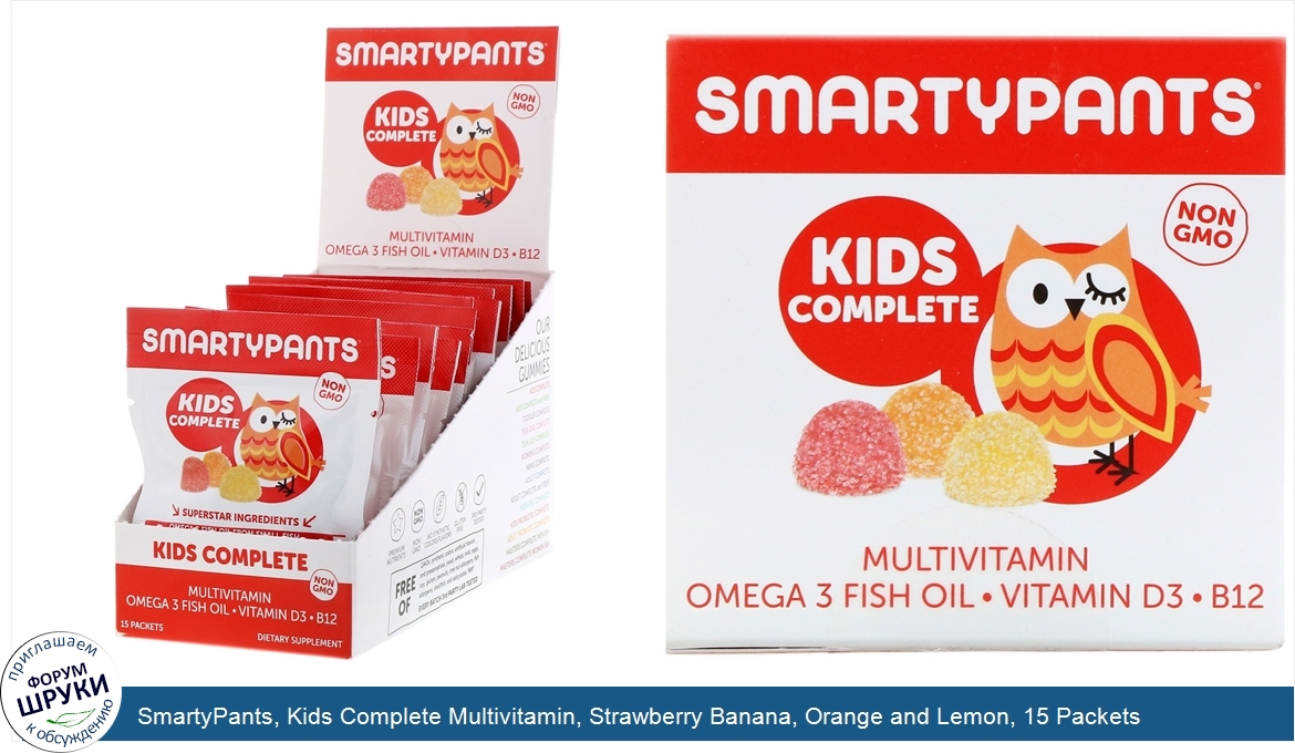 Друзья, если у вас есть отзыв/дополнение/комментарий/вопрос относительно SmartyPants, Kids Complete Multivitamin, Strawberry Banana, Orange and Lemon, 15 Packets - напишите его ответом в эту тему (это будет полезно всему сообществу в целом и вам в отдельности).
