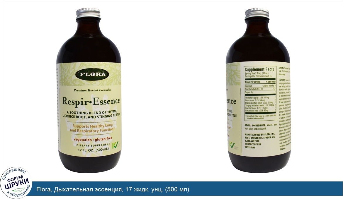 Друзья, если у вас есть отзыв/дополнение/комментарий/вопрос относительно Flora, Дыхательная эссенция, 17 жидк. унц. (500 мл) - напишите его ответом в эту тему (это будет полезно всему сообществу в целом и вам в отдельности).
