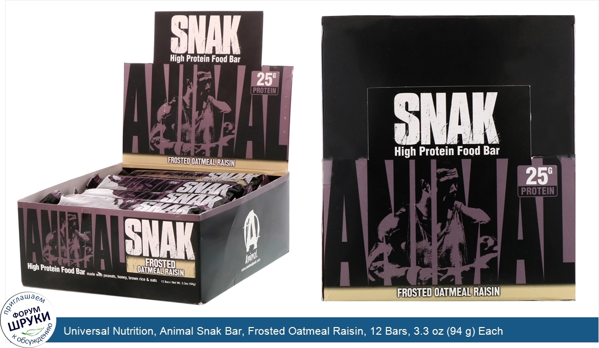 Universal Nutrition, Animal Snak Bar, Frosted Oatmeal Raisin, 12 Bars, 3.3 oz (94 g) Each