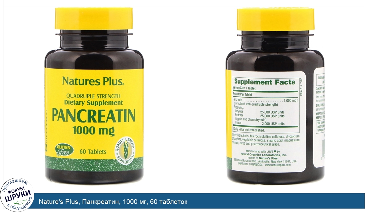 Друзья, если у вас есть отзыв/дополнение/комментарий/вопрос относительно Nature's Plus, Панкреатин, 1000 мг, 60 таблеток - напишите его ответом в эту тему (это будет полезно всему сообществу в целом и вам в отдельности).