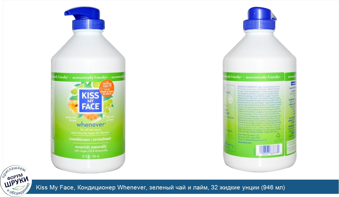 Kiss My Face, Кондиционер Whenever, зеленый чай и лайм, 32 жидкие унции (946 мл)
