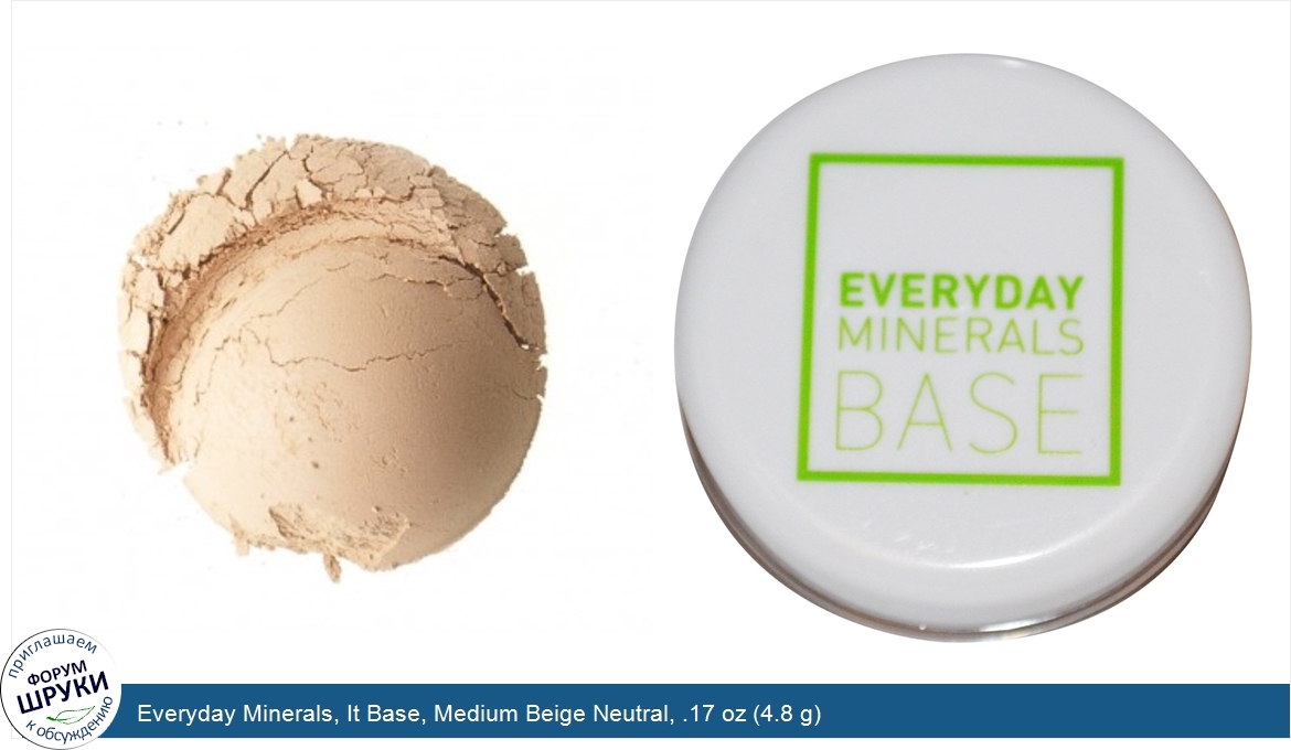 Друзья, если у вас есть отзыв/дополнение/комментарий/вопрос относительно Everyday Minerals, It Base, Medium Beige Neutral, .17 oz (4.8 g) - напишите его ответом в эту тему (это будет полезно всему сообществу в целом и вам в отдельности).