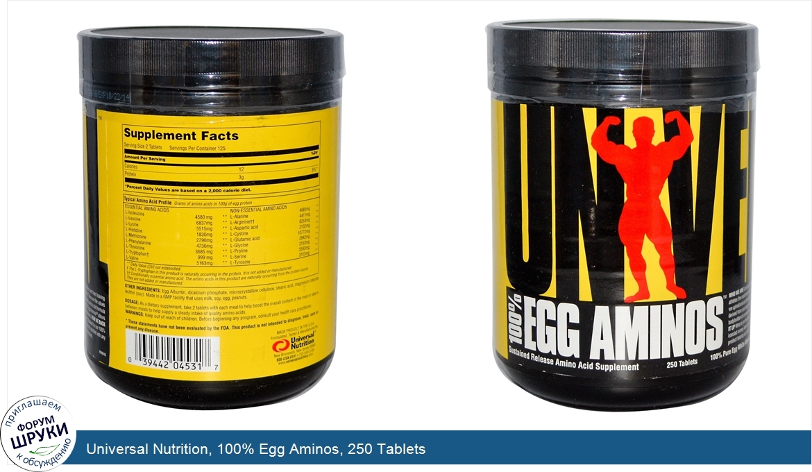 ru Universal Nutrition, 100% Egg Aminos, 250 Tablets