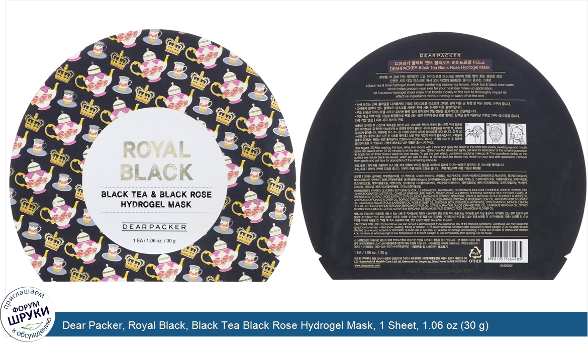 Dear Packer, Royal Black, Black Tea Black Rose Hydrogel Mask, 1 Sheet, 1.06 oz (30 g)