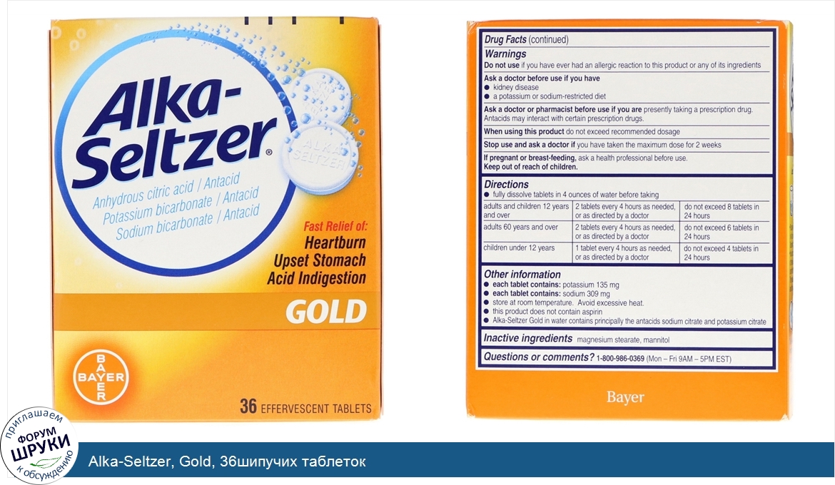 Друзья, если у вас есть отзыв/дополнение/комментарий/вопрос относительно Alka-Seltzer, Gold, 36шипучих таблеток - напишите его ответом в эту тему (это будет полезно всему сообществу в целом и вам в отдельности).