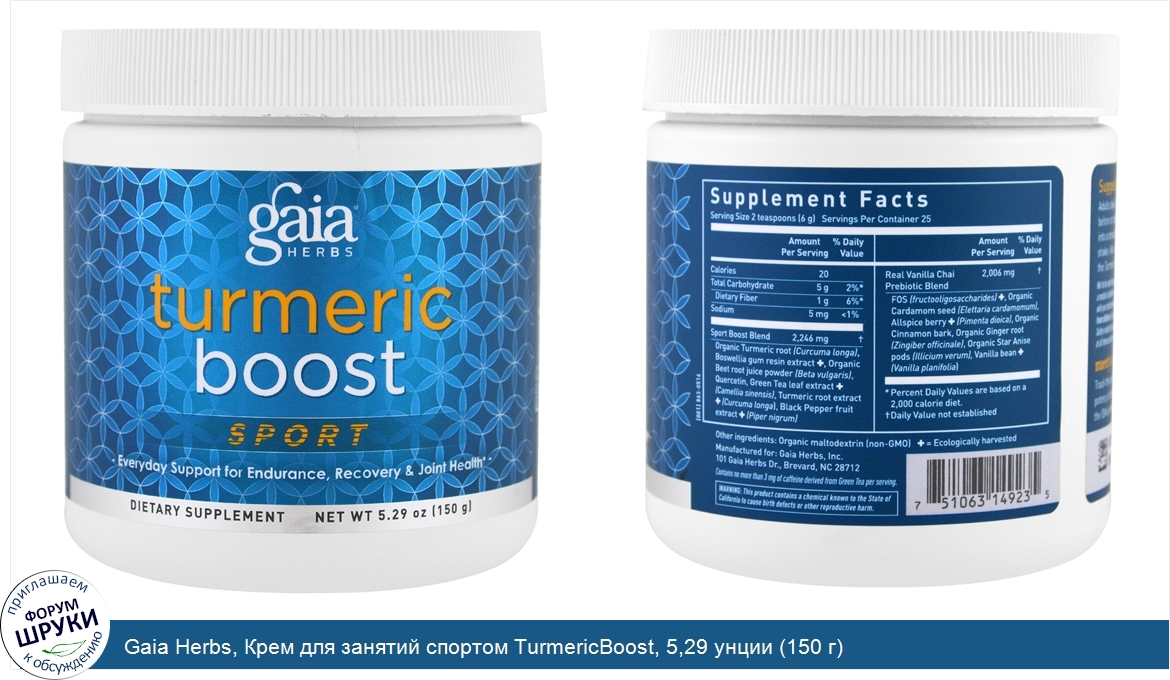 Gaia Herbs, Крем для занятий спортом TurmericBoost, 5,29 унции (150 г)