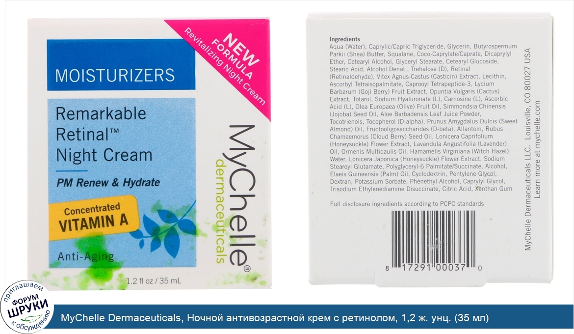 Друзья, если у вас есть отзыв/дополнение/комментарий/вопрос относительно MyChelle Dermaceuticals, Ночной антивозрастной крем с ретинолом, 1,2 ж. унц. (35 мл) - напишите его ответом в эту тему (это будет полезно всему сообществу в целом и вам в отдельности).