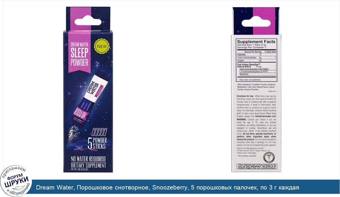 Друзья, если у вас есть отзыв/дополнение/комментарий/вопрос относительно Dream Water, Порошковое снотворное, Snoozeberry, 5 порошковых палочек, по 3 г каждая - напишите его ответом в эту тему (это будет полезно всему сообществу в целом и вам в отдельности).
