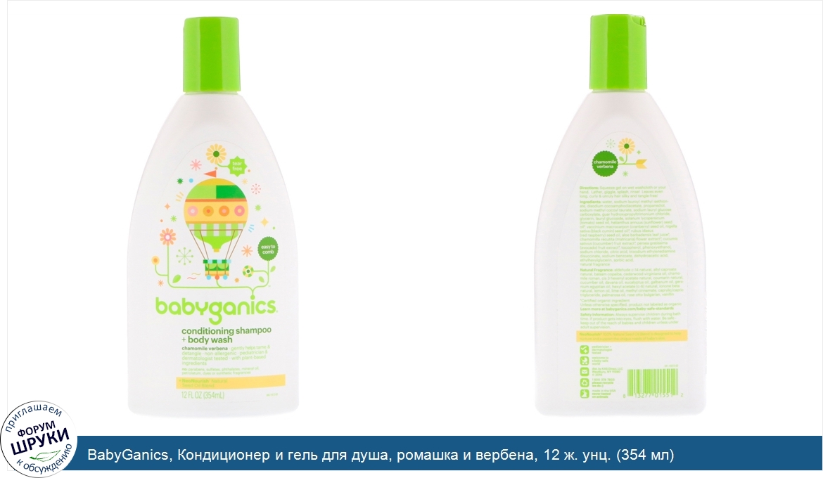 BabyGanics, Кондиционер и гель для душа, ромашка и вербена, 12 ж. унц. (354 мл)