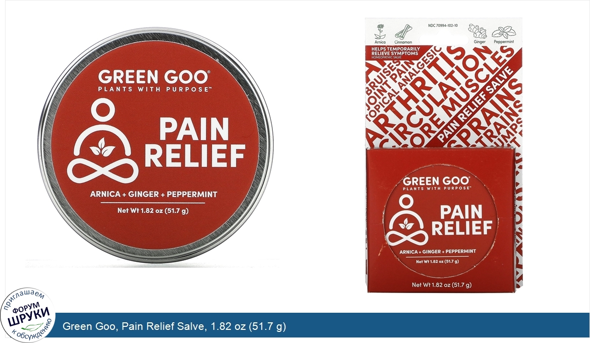 Друзья, если у вас есть отзыв/дополнение/комментарий/вопрос относительно Green Goo, Pain Relief Salve, 1.82 oz (51.7 g) - напишите его ответом в эту тему (это будет полезно всему сообществу в целом и вам в отдельности).