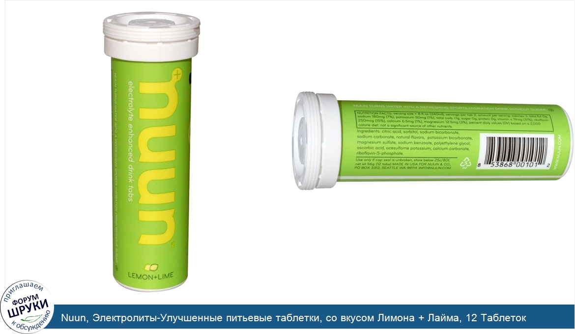 Друзья, если у вас есть отзыв/дополнение/комментарий/вопрос относительно Nuun, Электролиты-Улучшенные питьевые таблетки, со вкусом Лимона + Лайма, 12 Таблеток - напишите его ответом в эту тему (это будет полезно всему сообществу в целом и вам в отдельности).