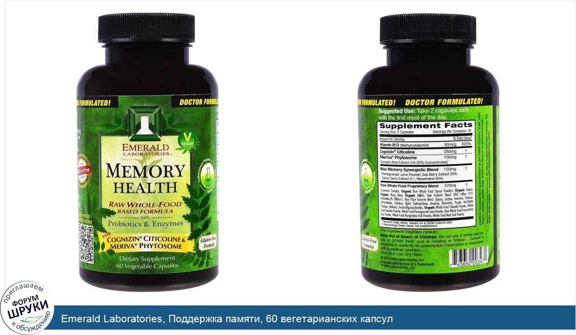 Emerald Laboratories, Поддержка памяти, 60 вегетарианских капсул